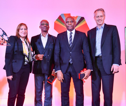 - Bea Perez, Premier vice-président et chef des communications, agent des relations publiques et de la durabilité, Coca-Cola Company; Doyin Salami, président du conseil consultatif de l'économie (FRN); Tony Elumelu, président du conseil, Heirs Holdings et James Quincey, PDG