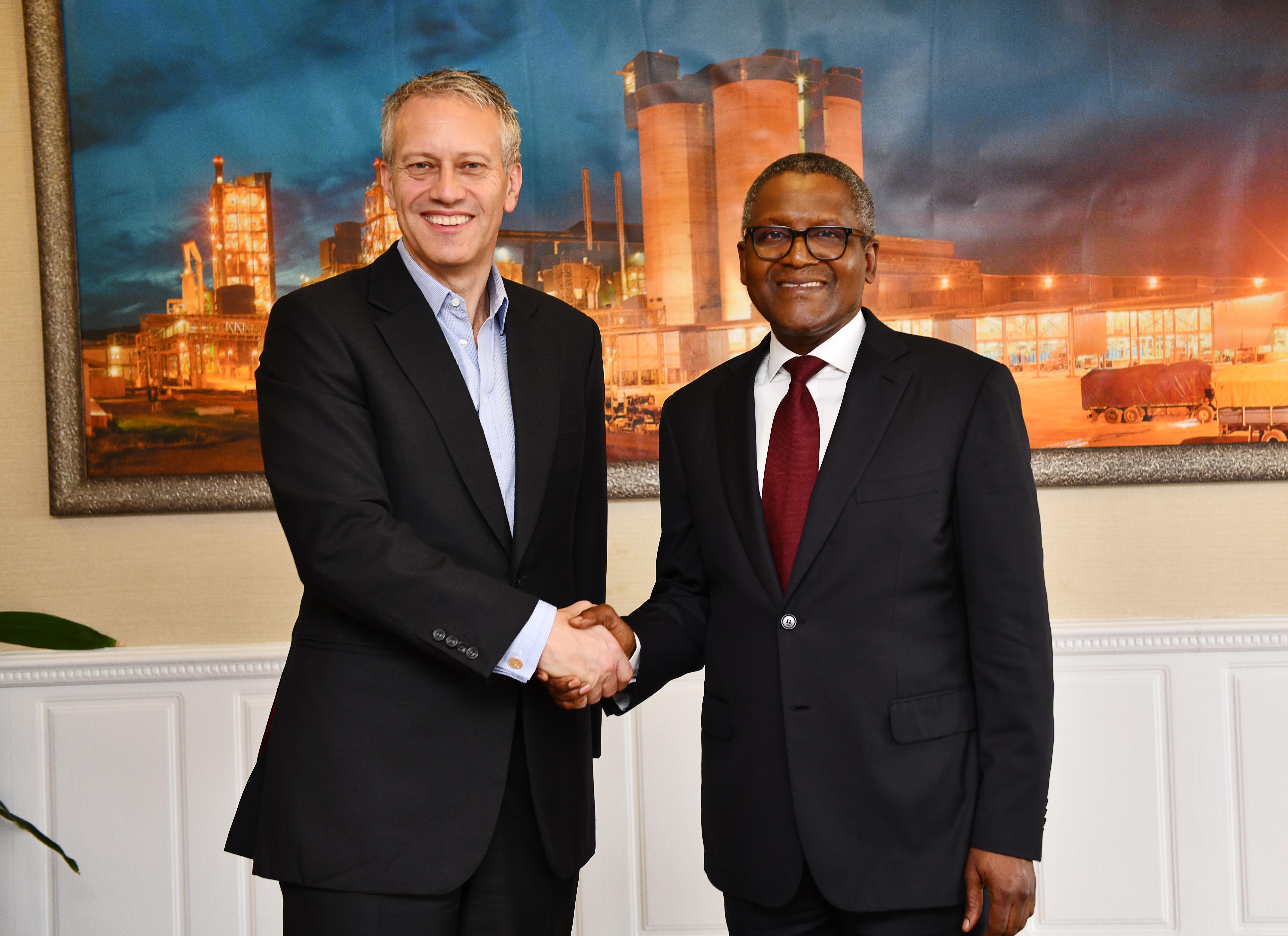 James Quincey, président-directeur général de The Coca-Cola Company (à gauche) et Aliko Dangote, président du groupe Dangote, lors de leur récent engagement à Lagos (Source: Coca-Cola | 6 years ago) |